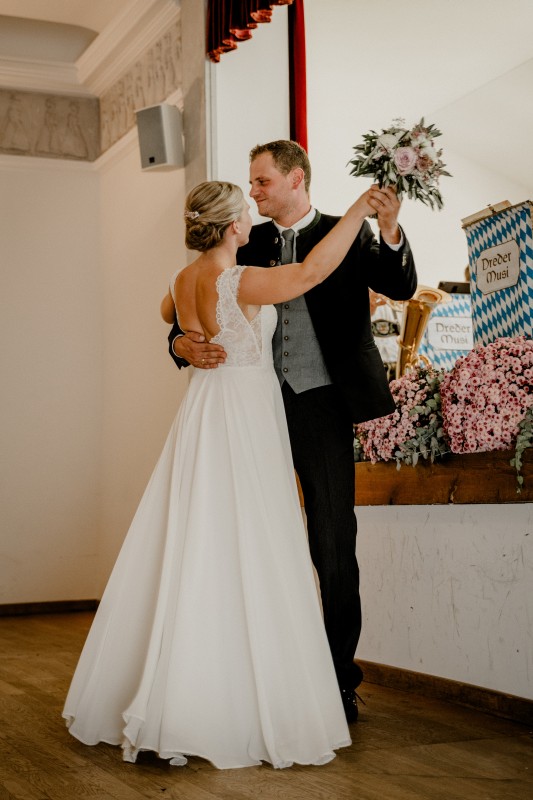 Am Hochzeitstag standen wir nach der Kirche in Tuntenhausen Spalier und fanden uns später beim Landgasthof Wallner in Ostermünchen ein. Bei bestem Wetter genossen wir den Wein im Biergarten. Nach dem Abendessen führten die Aktiven dem Brautpaar zu Ehren den Sterntanz auf und gratulierten herzlich. Bis Mitternacht feierten wir ausgelassen diese schöne Spätsommerhochzeit. Maria und Sepp, wir wünschen euch zu euren Hochzeitstag nur das Beste für euch als Paar und für eure Familie.