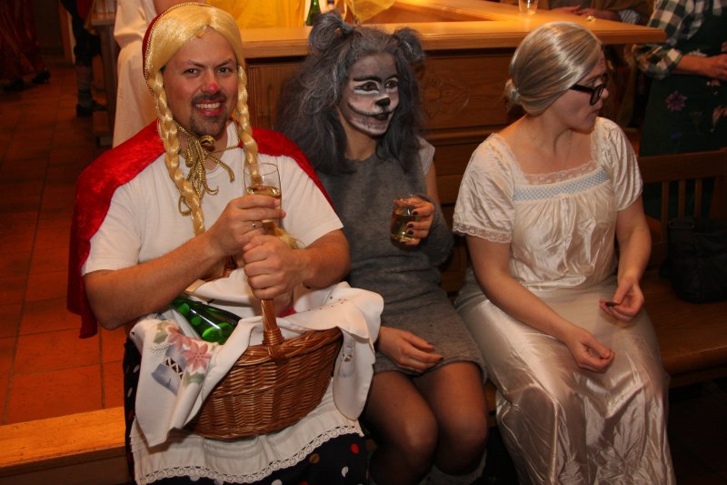 In der Weinstube empfing das Hochzeitspaar - der Bräutigam noch unerkannt in Gestalt eines Frosches - die Gäste bei einem edlen Glas Rebensaft. Viele Geschenke wurden überreicht vom königlichen Fanfaren- und Trommelzug, vom Hexenclan, von Schnewittchens Zwergen, von einigen Rotkäppchen samt Wölfen, von Rittern und Feen, vom Prinzessinnenclub und vielen anderen fabelhaften Wesen.